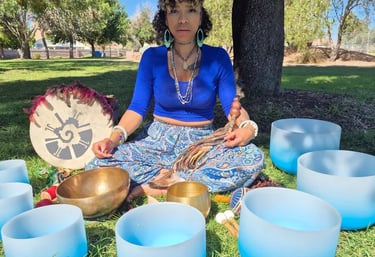 Kahleema is a healer who specializes in somatic sound therapy, breathwork, and shamanic practices, merging the realms of science and spirituality. She is committed to guiding individuals toward profound and gentle healing. With over ten years of navigating her own trauma recovery and spiritual awakening, she now creates environments where emotional release, ancestral healing, limbic system regulation, deep self-awareness, and radical self-value coexist. Using techniques like breathwork, voice alchemy, crystal sound bowls, and intuitive "dragon" toning (dragonning), she encourages participants to let go of outdated patterns, reconnect with their bodies, and embrace their sovereignty, safety, and the worthiness of their desires for life.